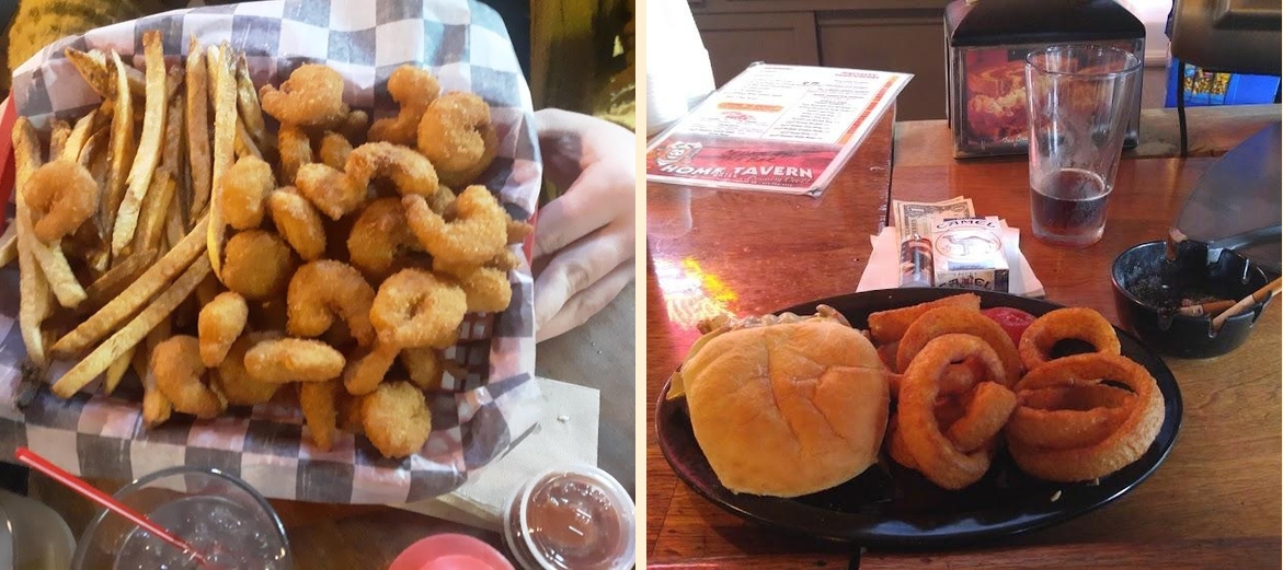 The Home Tavern boasts a variety of dishes. Try the Chicken Drummys and Buffalo Chicken Salad. Don't miss the Waffle Fries. The burgers, like The Works, are favorites too. Plenty of choices await.
